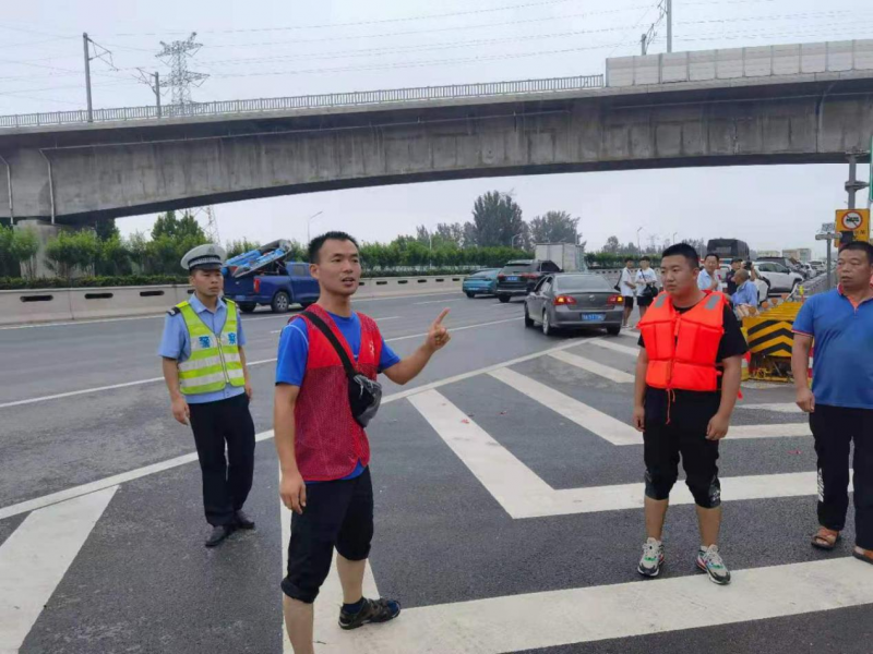 教師尚大海作為志愿者幫助疏導(dǎo)交通