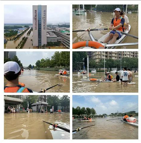 近日,因百年不遇的強(qiáng)降雨造成的洪水侵襲鄭州,綠城人民生命財產(chǎn)安全受到巨大威脅。鄭州阜外華中心腦血管醫(yī)院周邊因地勢低洼,導(dǎo)致方圓幾公里一片汪洋,該區(qū)域停水、停電。醫(yī)院告急!患者危急!鄭州大學(xué)體育學(xué)院學(xué)生2018級王匯波、2020級葛泰宇、王義建、孟子奧、旦晨旭一行以高度的社會責(zé)任感,運(yùn)用過硬的專業(yè)技能,分批攜帶雙人賽艇,火速前往受災(zāi)地點(diǎn)及周邊地區(qū)參與抗洪搶險。鄭州大學(xué)體育學(xué)院2000屆校友、河南省豐合水上俱樂部負(fù)責(zé)人程遠(yuǎn)林,提供了救援舟艇并前往劉江安置區(qū)開展水上救助工作。