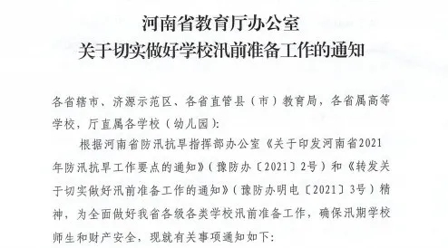 2021年7月21日早上3時(shí),河南省防汛抗旱指揮部把防汛應(yīng)急響應(yīng)級別提升為I級,省教育廳承擔(dān)“落實(shí)汛期學(xué)校安全度汛方案,加強(qiáng)在校學(xué)生的防災(zāi)避險(xiǎn)意識教育宣傳,暴雨洪水發(fā)生后組織教職員工和學(xué)生安全轉(zhuǎn)移”職責(zé)。財(cái)務(wù)處承擔(dān)牽總?cè)蝿?wù)。