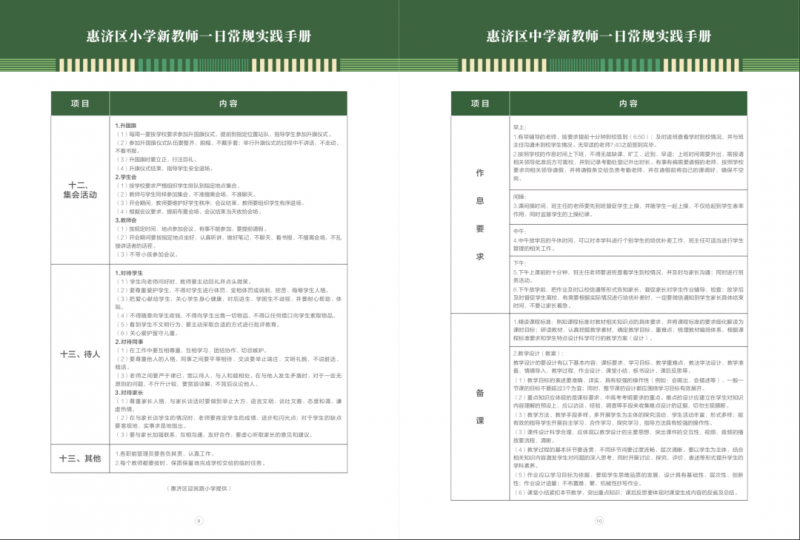 據(jù)悉,2019年,惠濟(jì)區(qū)教育局教師教育科工作人員走訪全區(qū)比較優(yōu)質(zhì)局直學(xué)校及中心校,并與2018年入職新教師進(jìn)行對(duì)話,了解他們的困惑和一年來哪些實(shí)踐對(duì)自己有用,結(jié)合教師實(shí)際情況和專家引領(lǐng)制定出《新教師入崗手冊》。