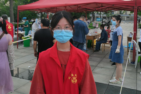 會(huì)計(jì)學(xué)專業(yè)1910班的相雯穎是一名黨員發(fā)展對(duì)象,同時(shí)也是此次揚(yáng)州疫情的一名志愿者。在第一次全市做核酸檢測(cè)的時(shí)候,她被醫(yī)護(hù)人員和志愿者們的辛苦所感動(dòng),立即主動(dòng)報(bào)名參加了社區(qū)的疫情志愿者服務(wù)。相雯穎說:“第一次這么近距離的接觸疫情,我感受到了醫(yī)務(wù)工作者的偉大,作為一名大學(xué)生,雖然沒有專業(yè)的醫(yī)學(xué)知識(shí),無法去前線沖鋒陷陣,但我一定盡自己的全力幫助身邊的人!”