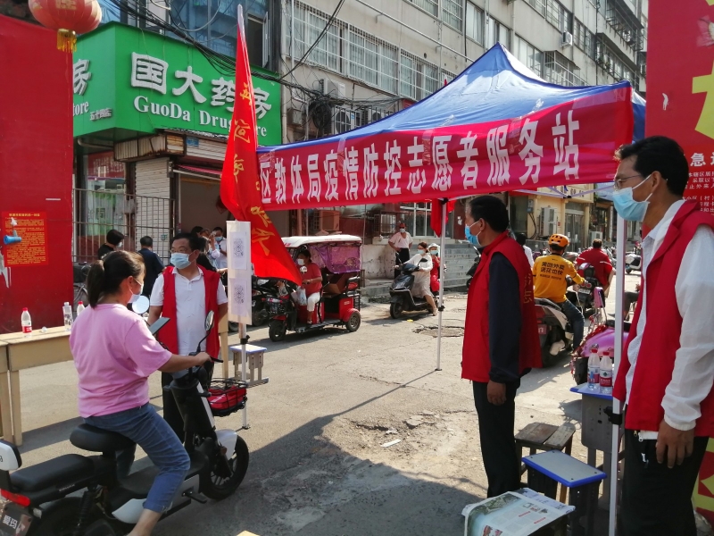 8月初,湛河區(qū)開展了“機關干部上前線、協(xié)力打贏阻擊戰(zhàn)”活動,程莊社區(qū)成為教體局的防控責任區(qū)。該局40名志愿者迅疾入駐程莊社區(qū),設立3個值守點,并利用橫幅、小喇叭營造疫情防控氛圍。