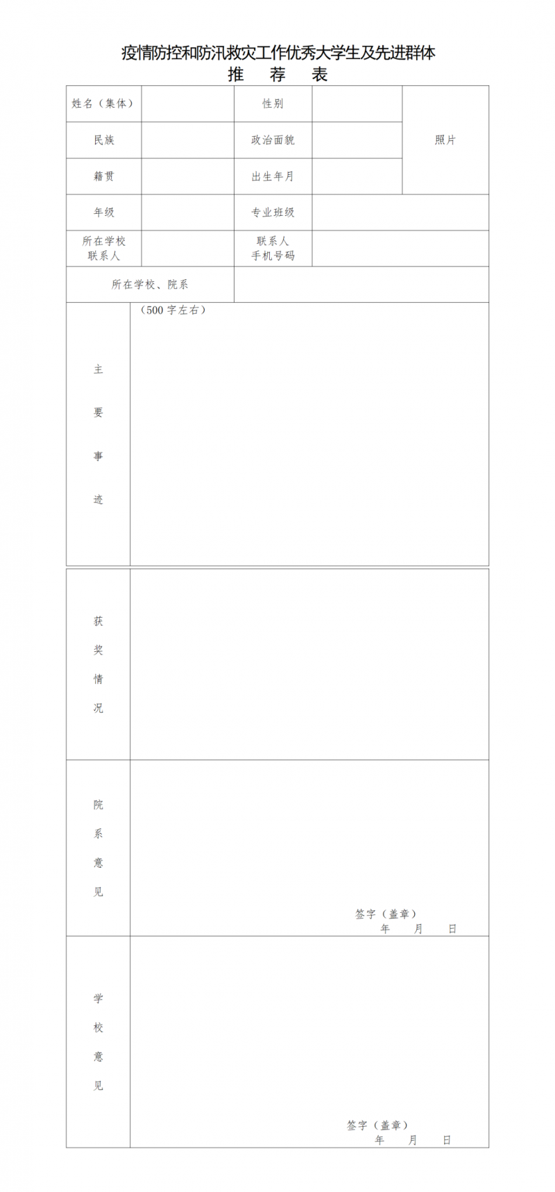 附件:疫情防控和防汛救災(zāi)工作優(yōu)秀大學生及先進群體推薦表