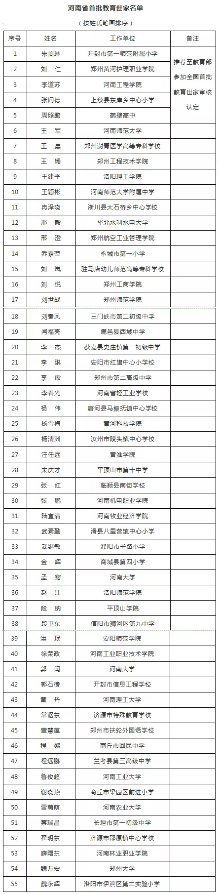 近日,經(jīng)過個(gè)人申報(bào)、單位推薦、專家評審等程序,河南省首批教育世家名單公布,55個(gè)教師家庭獲評河南省首批教育世家。