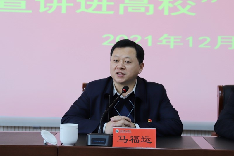 2021年12月30日,信陽農(nóng)林學(xué)院在教師發(fā)展中心多功能報告廳舉辦“學(xué)習(xí)貫徹黨的十九屆六中全會精神集中宣講進高校”座談交流會,邀請省委宣講團成員、河南師范大學(xué)黨委常委、宣傳部長馬福運教授與學(xué)校黨員干部、輔導(dǎo)員、師生代表暢談交流學(xué)習(xí)貫徹黨的十九屆六中全會精神學(xué)習(xí)心得。信陽農(nóng)林學(xué)院黨委副書記王慶兵,副校長王萬玲,黨委委員、黨辦主任、宣傳部長何濤參加座談。