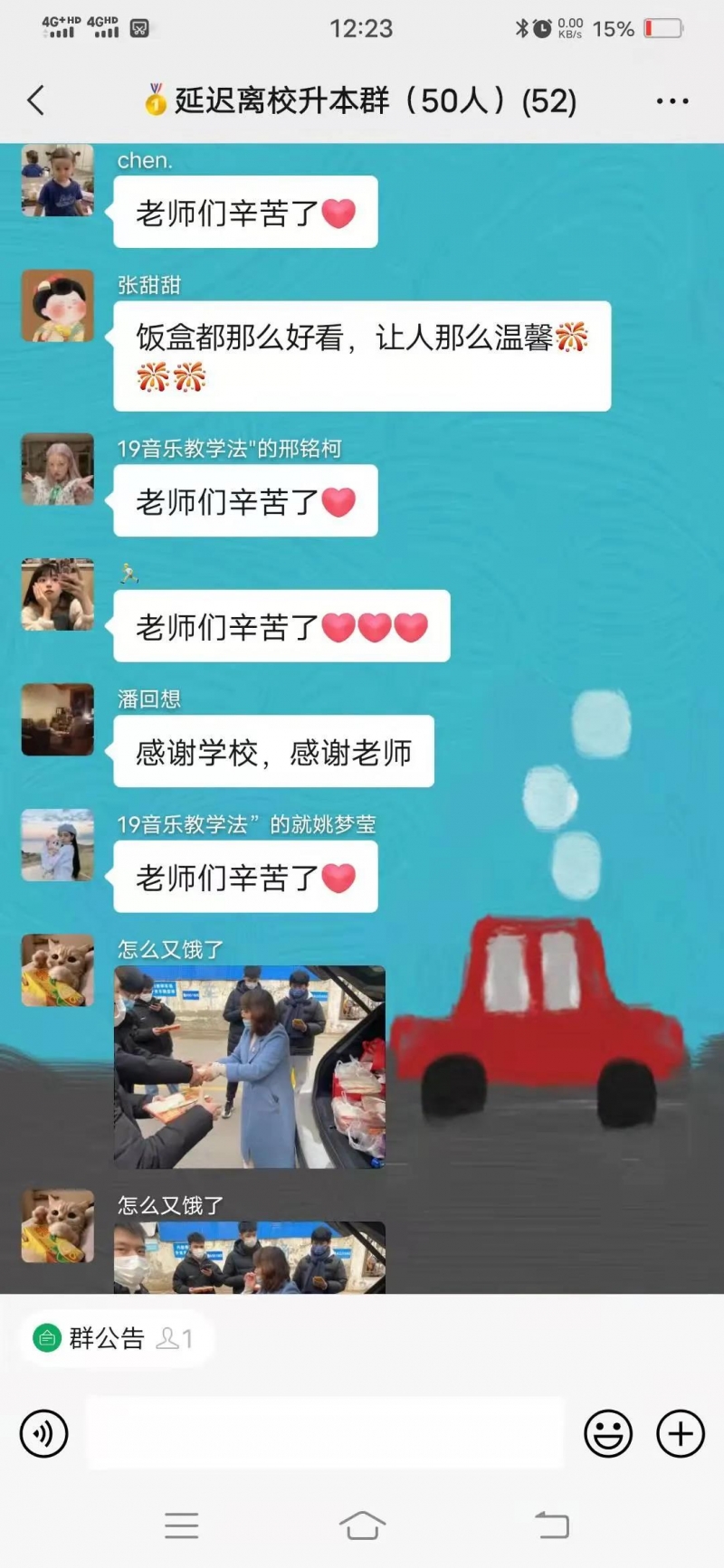 我是2019級音樂表演2班的學生——張?zhí)鹛穑懈卸l(fā),今天我特別的感動,想替我們延遲離校的全體學生向所有關心我們愛護我們的領導和老師們說一聲:“謝謝!yyds!”