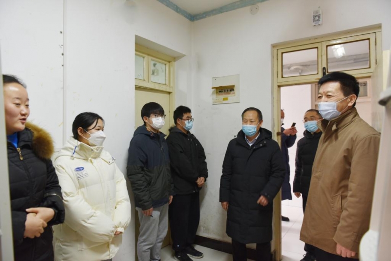 周志遠(yuǎn)一行來到留校學(xué)生集中住宿的11號學(xué)生宿舍樓,與學(xué)生親切交流,詳細(xì)詢問了他們的住宿、學(xué)習(xí)、生活情況,并叮囑同學(xué)們:當(dāng)前國內(nèi)疫情防控形勢持續(xù)向好,大家要保持樂觀向上的心態(tài);嚴(yán)格遵守學(xué)校疫情防控各項規(guī)定,認(rèn)真落實當(dāng)?shù)匾咔榉揽卮胧袑嵶龊脗€人防護(hù);充分利用寒假時間,多讀書“充電”、多鍛煉身體,度過一個有意義的寒假。周志遠(yuǎn)關(guān)切地提醒同學(xué)們,留校期間遇到任何困難,要及時向老師反饋,學(xué)校會圍繞大家的學(xué)習(xí)、生活、安全等做好全面服務(wù),確保大家在校期間的健康安全穩(wěn)定。