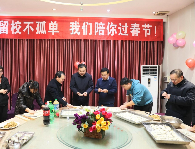 校領(lǐng)導(dǎo)與留校學(xué)子一起包餃子