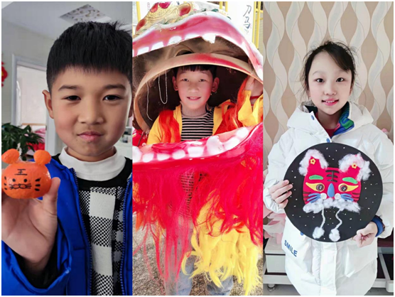 同學(xué)們以“虎年”為元素,畫(huà)虎、唱虎、剪虎、做虎頭和虎燈籠,和家人一起貼春聯(lián)、寫(xiě)福字,收集春聯(lián)和“中國(guó)年”相關(guān)知識(shí)制作圖文并茂的手抄報(bào),將自己對(duì)新年的祝福和期盼寓于其中。