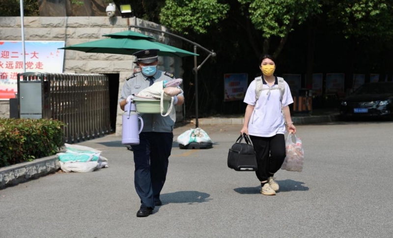 學(xué)校設(shè)立了返校學(xué)生入校專用通道、學(xué)生物品消毒處、體溫檢測點、臨時醫(yī)療隔離觀察點等,嚴(yán)格執(zhí)行“一消二測三核四掃”的入校程序。返校學(xué)子佩戴口罩,嚴(yán)密防護(hù),通過行李消毒、體溫檢測、雙綠碼和三天兩檢核酸陰性報告核驗、場所碼掃描登記、返校人員登記等環(huán)節(jié)有序進(jìn)入校園。各二級學(xué)院和相關(guān)部門各盡其職、互相配合,用嚴(yán)謹(jǐn)?shù)膽B(tài)度、貼心的服務(wù)迎接每一位返校同學(xué)的到來。