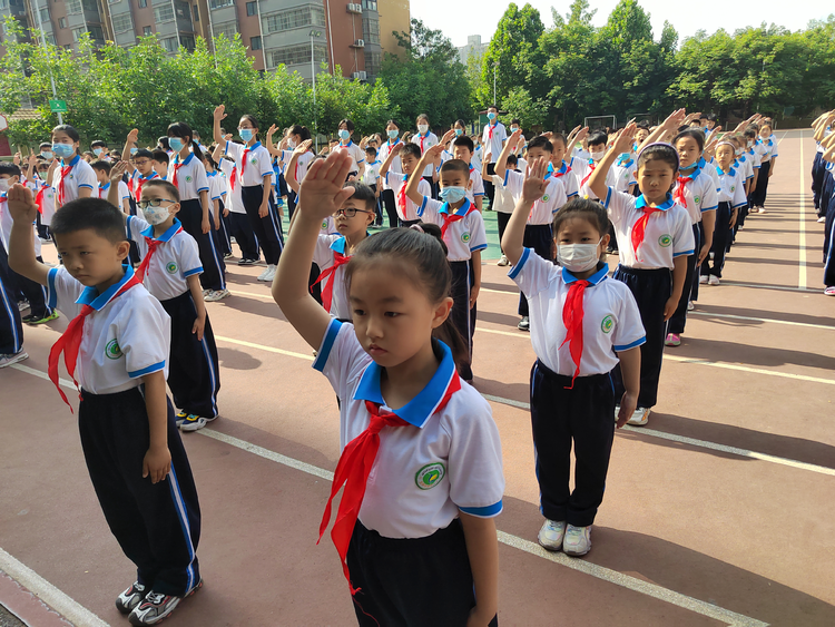 5月27日,安陽市銀鷺小學(xué)隆重舉行“童心向黨,神采飛揚(yáng)”一年級學(xué)生中國少年先鋒隊(duì)入隊(duì)儀式。
