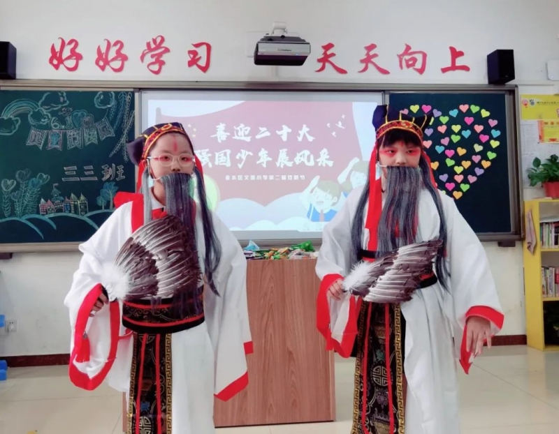 每一幕劇都是孩子們自己策劃、編排;每一件道具都是他們精心準(zhǔn)備、自行安裝;每一份主持稿都是他們自己撰寫(xiě)、反復(fù)推敲出的成果;每一個(gè)精彩的瞬間都是他們?cè)谡n間無(wú)數(shù)次排練的呈現(xiàn)……本次戲劇節(jié)力求讓每一位孩子都成為節(jié)日的主角,讓每一間教室變成劇場(chǎng)、讓三尺講臺(tái)變成展現(xiàn)學(xué)生“德智體美勞”全面發(fā)展的夢(mèng)想舞臺(tái)。