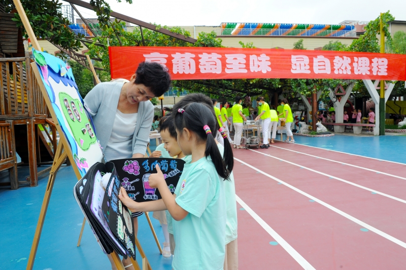 省直機(jī)關(guān)第二幼兒園園長(zhǎng)解慧表示:“今年的葡萄節(jié),我們圍繞著自然課程,和孩子們一起走進(jìn)葡萄的世界。通過(guò)觀察、探索、采摘、品嘗等,讓孩子們對(duì)葡萄產(chǎn)生濃厚的興趣,用獨(dú)特的視角認(rèn)識(shí)、了解葡萄的種類、特征、生長(zhǎng)過(guò)程等。用歌唱、舞蹈、美工、自制繪本等多種形式大膽表達(dá)自己的認(rèn)知與感受,帶孩子進(jìn)入一個(gè)開(kāi)闊的學(xué)習(xí)探索空間,感受大自然課堂的無(wú)限樂(lè)趣。”