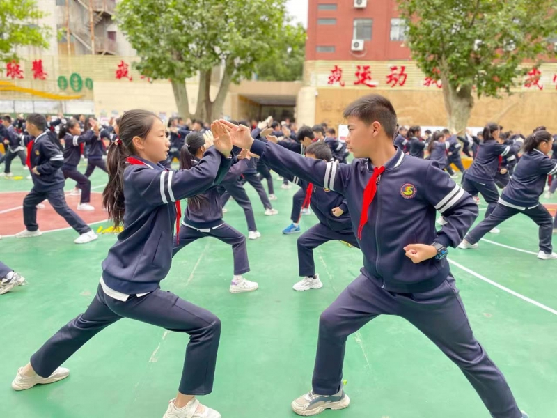 陽光運(yùn)動武清廉。武術(shù)是該校文化建設(shè)的重要抓手,學(xué)校將武術(shù)特色進(jìn)行校本化深度實(shí)施。編寫具有清廉特色的《武韻紅扇》校本教材,分年級段設(shè)置學(xué)習(xí)內(nèi)容:低年級以武術(shù)基本功為主,中年級是武術(shù)套路加功夫扇,高年級學(xué)習(xí)武術(shù)套路加雙截棍。通過武術(shù)健身拳操,鍛煉意志,培養(yǎng)品德,提升精氣神。該校將廉潔文化融入陽光大課間,用“清”育武魂,用“廉”潤校園。“廉為鏡,須高懸,名與利,莫癡戀……”操場上鏗鏘有力的聲音,整齊劃一的動作,虎虎生威的武術(shù)操,剛?cè)岵?jì)的太極,把清廉風(fēng)骨演繹的淋漓盡致。