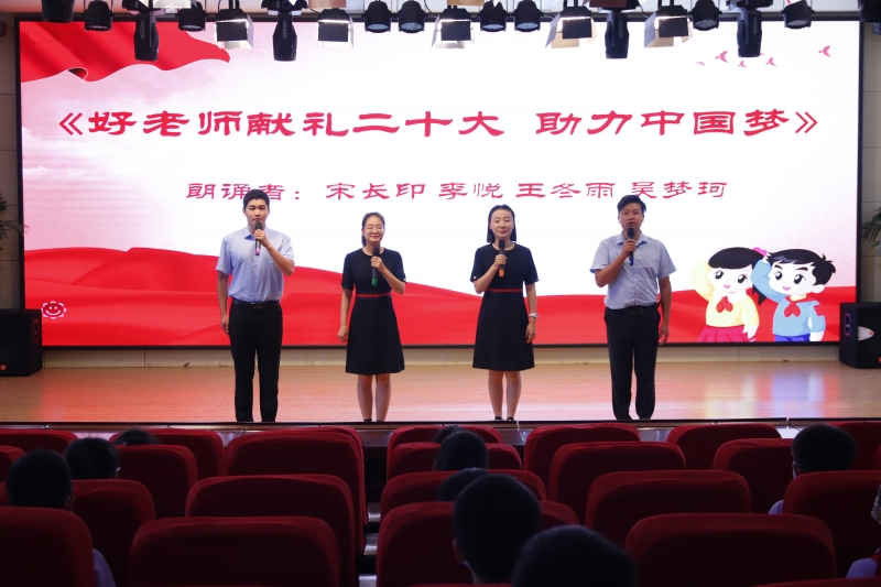 迎接黨的二十大,培根鑄魂育新人。教師代表也表達出牢記習(xí)近平總書記“四有”好老師的要求,以昂揚向上的精神面貌和立德樹人的扎實行動,迎接黨的二十大勝利召開。