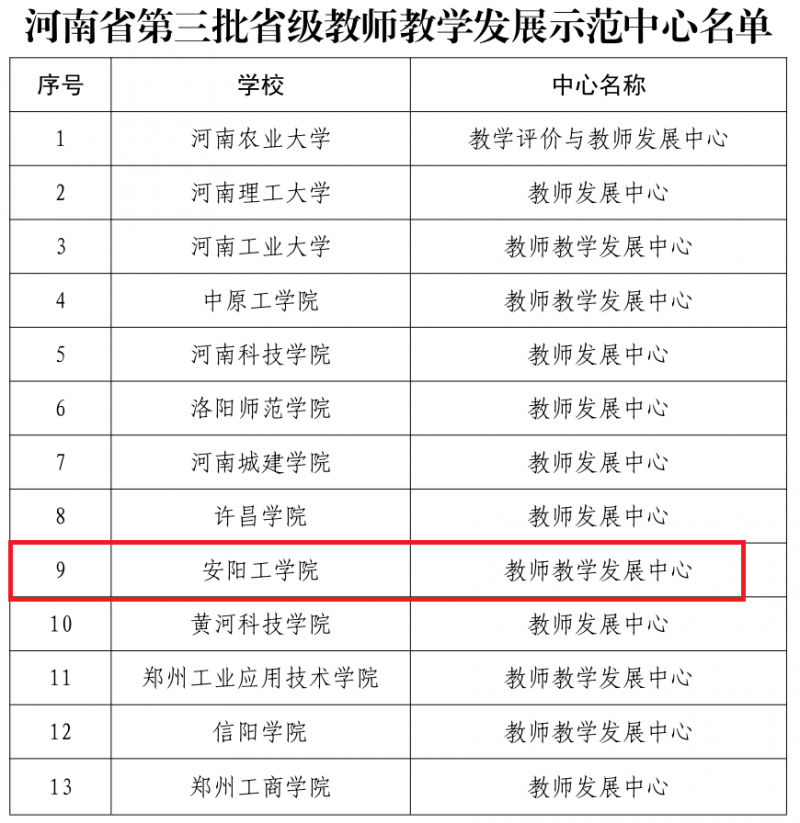 近日,河南省教育廳下發(fā)《關(guān)于公布第三批省級教師教學(xué)示范中心的通知》(教高〔2022〕375號),安陽工學(xué)院教師發(fā)展中心成功入選河南省第三批省級教師教學(xué)發(fā)展示范中心。