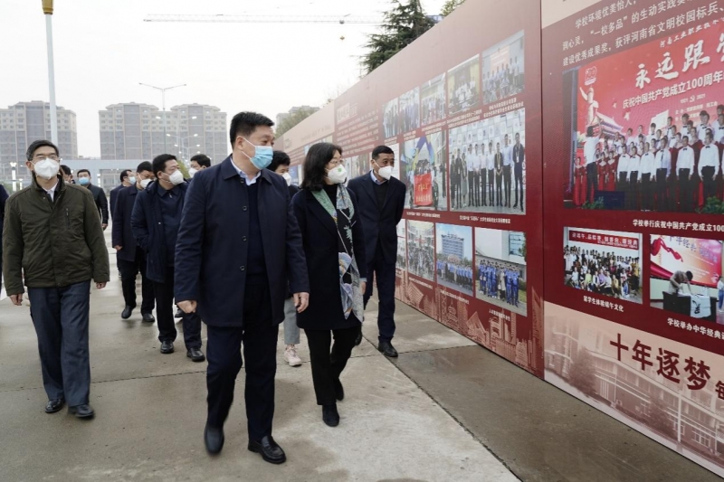 在學(xué)校神舟廣場,溫道軍代表學(xué)校對毛杰一行來校調(diào)研指導(dǎo)表示歡迎,對教育廳及市委、市政府關(guān)心支持學(xué)校事業(yè)發(fā)展表示感謝,并從“黨建引領(lǐng)揚(yáng)風(fēng)帆”“立德樹人擔(dān)使命”“人才強(qiáng)校聚眾智”“教學(xué)科研深耕耘”“技能大賽展風(fēng)采”“產(chǎn)教融合謀發(fā)展”“就業(yè)創(chuàng)業(yè)拓新路”“人文校園育英才”等8個方面介紹了學(xué)校“我們這十年”辦學(xué)成果展。