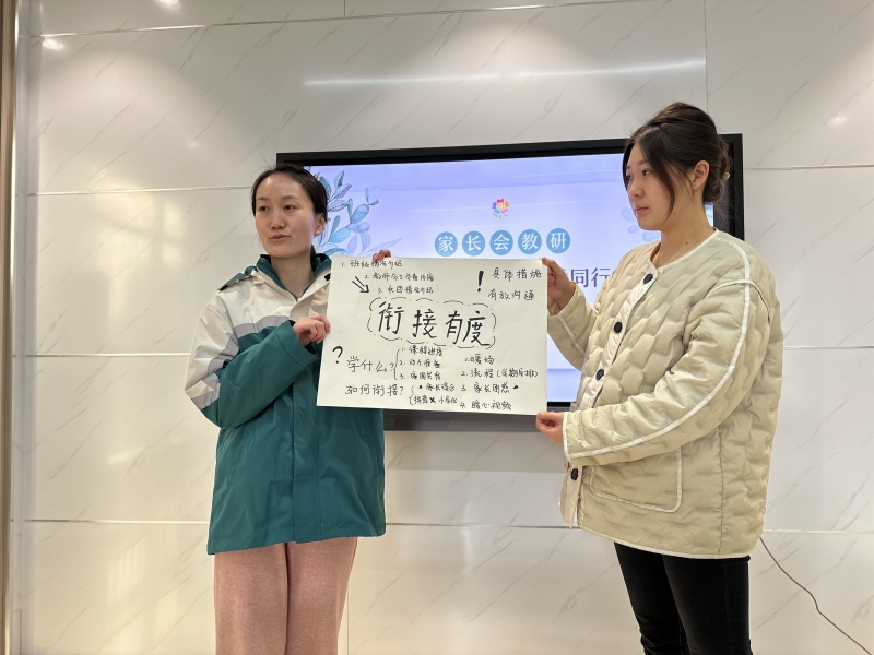 小、中、大三個(gè)年齡段老師各自為組,結(jié)合本組幼兒年齡段特點(diǎn),有針對(duì)性的從會(huì)議準(zhǔn)備、班級(jí)概況、社團(tuán)活動(dòng)、教育教學(xué)、家園共育等環(huán)節(jié)分組開(kāi)展。對(duì)于本次家長(zhǎng)會(huì),教師們做了充分的準(zhǔn)備和教研。首先以開(kāi)場(chǎng)的破冰游戲拉近彼此間的距離,為接下來(lái)的家長(zhǎng)會(huì)工作做好鋪墊。老師們根據(jù)本班實(shí)際情況、結(jié)合不同年齡階段幼兒的年齡特點(diǎn)和敏感期,對(duì)家長(zhǎng)會(huì)主要內(nèi)容進(jìn)行分組研討,并繪制思維導(dǎo)圖,進(jìn)行分享、展示與交流。