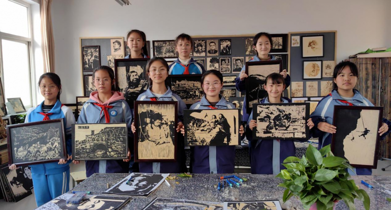 林州市西街學(xué)校正在刻繪100位修渠人、50個修渠故事,籌備六年級版畫畢業(yè)匯報展;編寫“版畫中的紅旗渠”少兒畫冊;開發(fā)烙畫、農(nóng)耕文化等特色課程。借助孩子們感興趣的載體,寓教于樂,讓紅色種子植入孩子的內(nèi)心,生根發(fā)芽。