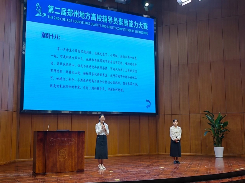 本屆輔導(dǎo)員素質(zhì)能力大賽由鄭州市高校擇優(yōu)推薦輔導(dǎo)員代表參賽,設(shè)置基礎(chǔ)知識、案例分析、談心談話三個考察環(huán)節(jié),全面綜合考察輔導(dǎo)員的工作能力和綜合素養(yǎng),以賽代訓(xùn),推進(jìn)輔導(dǎo)員隊伍建設(shè),提高學(xué)生思想政治教育工作水平。比賽中,嵩山少林武術(shù)職業(yè)學(xué)院輔導(dǎo)員張曉丹理論基礎(chǔ)扎實,工作能力過硬,從容自信,宣傳闡述習(xí)近平新時代中國特色社會主義思想、黨的二十大精神等理論政策,講述剖析學(xué)生工作案例,獲得了各環(huán)節(jié)評委的一致肯定,一路領(lǐng)先,總積分名列前茅,榮獲特等獎!