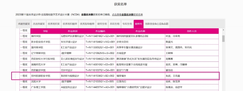 2023年8月25日,由國家工業(yè)和信息化部人才交流中心主辦的“第十一屆全國高校數(shù)字藝術(shù)設(shè)計大賽”省賽及國賽獲獎結(jié)果公布,鄭州旅游職業(yè)學院師生在激烈的競爭中脫穎而出,榮獲全國總決賽一等獎2項、二等獎1項。