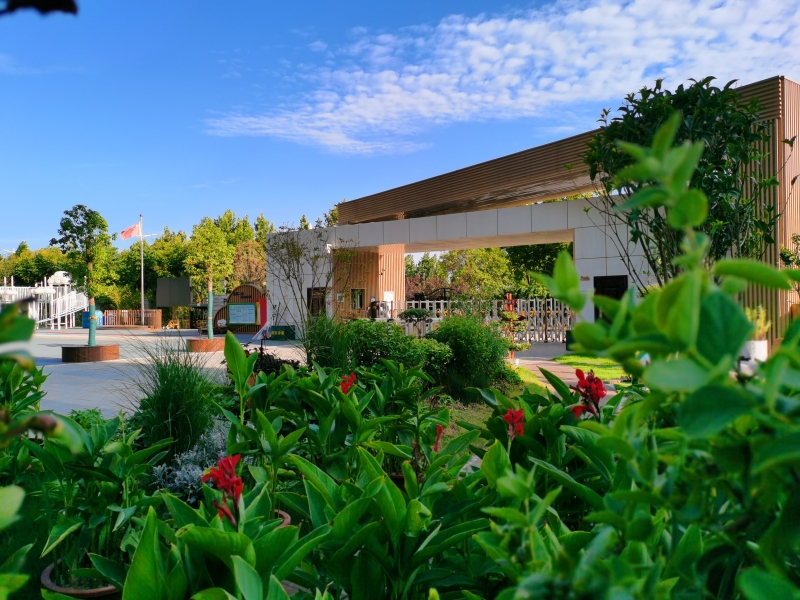 梧桐、薔薇落英繽紛,綠樹、紅墻交相輝映。室內渾然一體,自然雅致,書香撲鼻;中島白樺成林,棕櫚叢生,流水潺潺。一樓大地黃,以愛育愛;二樓森林綠,文化潤心;三樓天空藍,科技強國。一所將大自然搬進幼兒園的兒童樂園,在園內賞四季景,觀四時貌,樂在游戲中,學在自然里。 匠心雕琢和自然文化浸潤,讓這里的一花一草,一景一物飽含著詩情畫意,蘊藏著自然樸實、以人為本、立德樹人、大愛奉獻的教育價值。