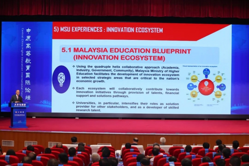莫哈末·舒克里·阿布以《創(chuàng)新提高高等教育質量》為題作專題報告。他對“大學與創(chuàng)新”理念和馬來西亞管理與科學大學創(chuàng)新實踐進行了深入地闡釋。他提出,AI和ChatGpt等新技術帶來的新變化、社會發(fā)展新趨勢和組織層面面臨的新變革等都對高等教育提出了新的時代考問。高校不僅要開展“漸進式改善性創(chuàng)新”,還要著力開展“顛覆式創(chuàng)新”,并且要與政府、產業(yè)、科研機構和社會組織一起構建創(chuàng)新生態(tài)。