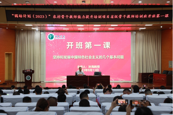 近日,許昌學(xué)院黨委副書記孫海教授走進省級骨干教師培訓(xùn)班的課堂,以《堅持和發(fā)展中國特色社會主義的幾個基本問題》為題講授“開班第一課”,引導(dǎo)培訓(xùn)人員深入學(xué)習(xí)貫徹黨的二十大精神,在建設(shè)教育強國中擔(dān)當(dāng)民族復(fù)興大任的新時代“大先生”。