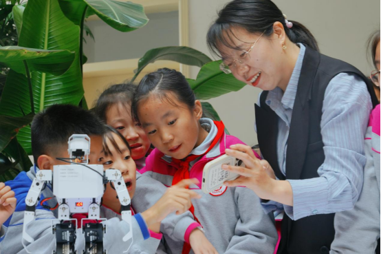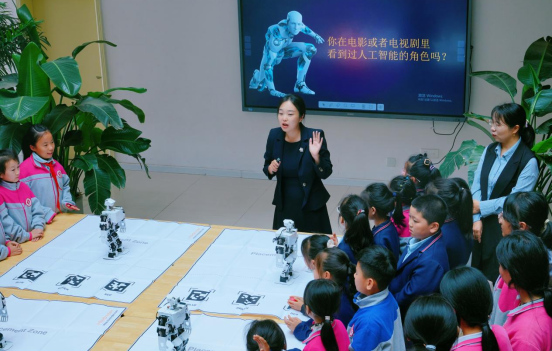 李巧君老師帶領(lǐng)孩子們親身體驗(yàn)機(jī)器人的操作,通過互相問好、跳舞歡迎、顏色測(cè)試、人臉識(shí)別、跌倒起立等一系列趣味無窮的操作深深吸引了孩子們的注意力,讓孩子們感受到了人工智能的奇妙,他們?cè)谟H自動(dòng)手實(shí)踐操作中感受著科技的神奇和魅力,現(xiàn)場(chǎng)氣氛活躍,歡笑聲、驚呼聲充滿校園。