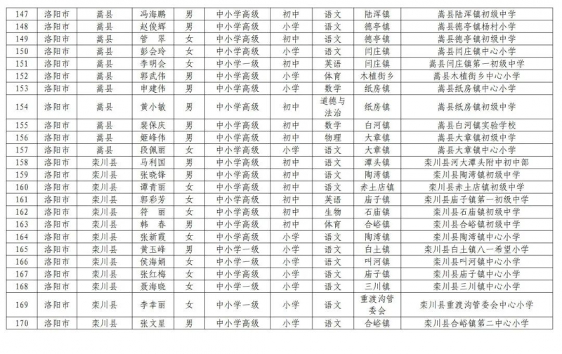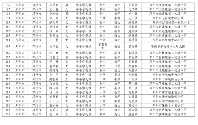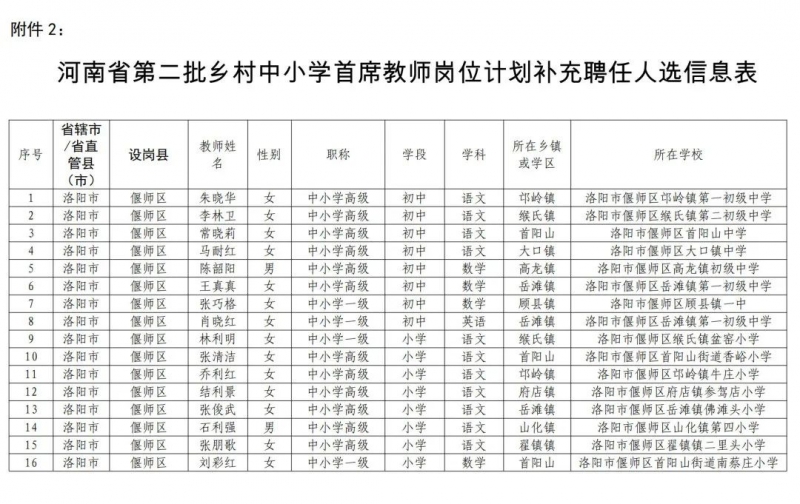 2.河南省第二批鄉(xiāng)村中小學(xué)首席教師崗位計(jì)劃補(bǔ)充聘任人選信息表