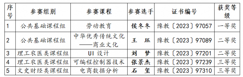 近日,河南省教育廳公布了2023年河南省高等職業(yè)教育課堂教學(xué)創(chuàng)新大賽獲獎(jiǎng)名單,河南開(kāi)放大學(xué)取得一等獎(jiǎng)1項(xiàng)、二等獎(jiǎng)2項(xiàng)、三等獎(jiǎng)2項(xiàng)的好成績(jī)。同時(shí),一等獎(jiǎng)獲獎(jiǎng)作品認(rèn)定為河南省職業(yè)教育“課堂革命”典型案例。具體見(jiàn)下表。