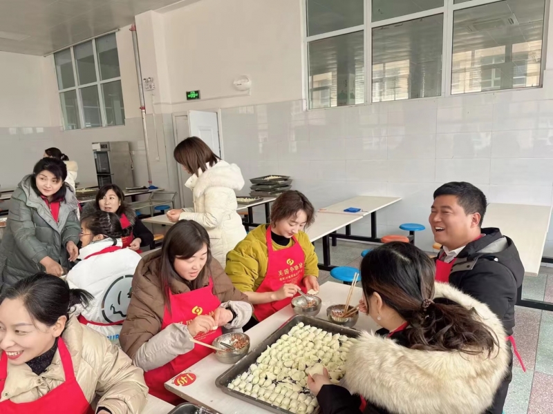 活動(dòng)首先舉行了“品餃子、話情意”節(jié)目。下午五點(diǎn),100多名教職工在歡聲笑語中開始拌餡、和面、搟皮、包餃子。不一會(huì),案板上出現(xiàn)了各種各樣的餃子,有元寶形的、月牙形的、有滾圓飽滿的、有小巧玲瓏的、有寓意平安吉祥的、有代表喜樂安康的、還有包有硬幣代表幸運(yùn)的。當(dāng)一盤盤熱氣騰騰的餃子端上桌時(shí),香氣撲面而來,使人垂涎三尺。大伙迫不及待拿起筷子品嘗起來。輕輕一咬,鮮美的肉餡、爽滑的面皮、醇香的料汁,唇齒留香,滿滿的幸福在心中蕩漾。這種美好的體驗(yàn)讓人倍感珍惜、永遠(yuǎn)難忘。