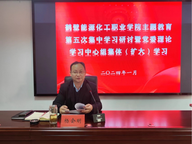 1月5日,鶴壁能源化工職業(yè)學(xué)院理論學(xué)習(xí)中心組舉行2024年度第1次集體(擴大)學(xué)習(xí)暨主題教育第五次集中學(xué)習(xí)研討。學(xué)院黨委書記楊會明主持會議。學(xué)院全體黨委中心組成員,各部門、系部負(fù)責(zé)人,全體高職輔導(dǎo)員參加學(xué)習(xí)。