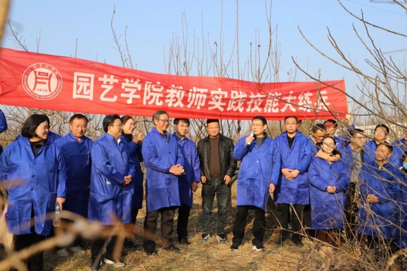 為提升教師實踐教學能力和服務鄉(xiāng)村振興意識,1月13日,信陽農(nóng)林學院園藝學院分別在校內(nèi)實習基地“馨園”和校外實習基地——信陽市青河灣生態(tài)農(nóng)業(yè)科技有限公司開展冬季實踐教學技能大練兵活動。副校長趙聘、農(nóng)林實習場場長胡漢升、原科技處處長史洪中、國資處處長張凱、林學院院長王輝、科技處副處長朱慶松、教師發(fā)展中心副主任邵穎、果樹學專家范宏偉、林學專家孫耀清、植保專家周洲、園藝學院全體教師及林學院部分教師參加了本次活動。大練兵活動由園藝學院院長龔守富主持。