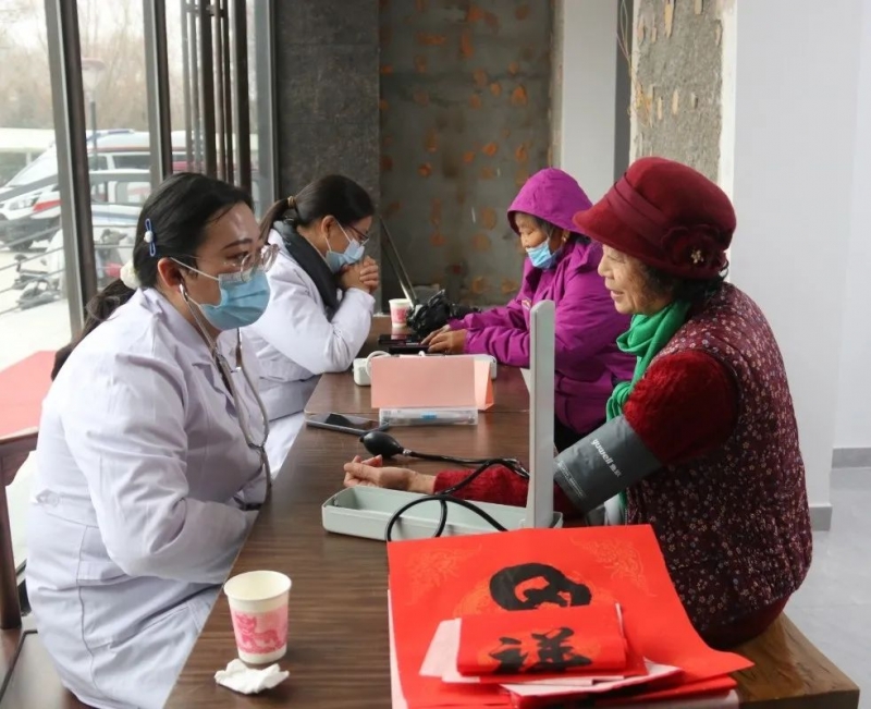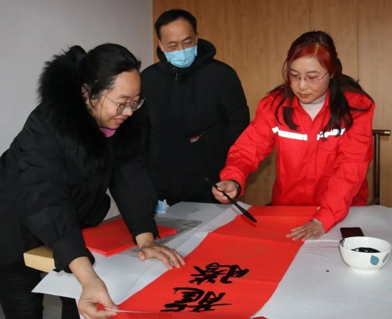 在社區(qū)的活動(dòng)現(xiàn)場(chǎng),前來(lái)接受義診服務(wù)的中老年人絡(luò)繹不絕,濮陽(yáng)醫(yī)專(zhuān)的醫(yī)療專(zhuān)家們?yōu)榫用衩赓M(fèi)提供血壓測(cè)量和心臟聽(tīng)診,進(jìn)行內(nèi)科、外科、婦科疾病、老年病、頸肩腰腿、糖尿病、兒童成長(zhǎng)、膳食養(yǎng)生等咨詢(xún)指導(dǎo),為居民們提供了全面的健康幫助。社區(qū)工作人員、志愿者和書(shū)法老師也早早擺好桌椅,準(zhǔn)備好紅色的對(duì)聯(lián)紙、毛筆和墨水。書(shū)法老師鋪紙研墨,筆酣墨飽,把一個(gè)個(gè)美好的祝福揮灑在紙上,把一句句衷心的祈愿融入在墨中。在工作人員的引導(dǎo)下,社區(qū)居民有序挑選自己喜歡的對(duì)聯(lián),或是請(qǐng)書(shū)法老師幫忙書(shū)寫(xiě)春聯(lián),做完診療的居民們拿著一幅幅紅火的春聯(lián),高興不已,紛紛豎起大拇指為濮陽(yáng)醫(yī)專(zhuān)和社區(qū)的暖心服務(wù)點(diǎn)贊。