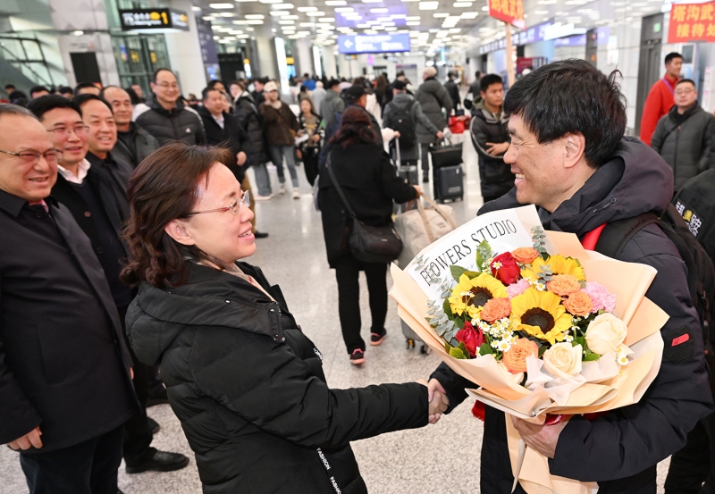 下午,在機場出站大廳,寫著“熱烈歡迎第十四屆全國冬運會河南代表團凱旋歸來”的橫幅格外顯眼,現(xiàn)場乘客也圍聚過來。在眾人的熱切期待中,何金博、付俊逸、葉康佳、蘇帥兵、郝麗赟、曹天晴、楊如意、熊文會、史曉涵等運動員從出口走出,現(xiàn)場立即響起雷鳴般的掌聲,鄭大體院學生代表迎上前去向他們獻花。孫曉紅、張紹通、張大超等領(lǐng)導(dǎo)熱情地與大家一一握手,并與隨后走出來的學院副院長張原、學院冬季運動管理中心的同志們、參與服務(wù)保障工作的河南省直第三人民醫(yī)院和河南省運動醫(yī)學與康復(fù)中心暨鄭州大學體育學院運動表現(xiàn)與康復(fù)中心工作人員握手,分別代表省體育局、鄭州大學體育學院向他們表示感謝,祝賀他們?nèi)〉昧蓑溔说膽?zhàn)績,實現(xiàn)了河南冬季運動項目大賽新的歷史性突破,為河南爭了光,為家鄉(xiāng)人民爭了光,為河南體育添了彩!當?shù)弥糠诌\動員稍作休整即將返回國家隊出戰(zhàn)新的賽事時,孫曉紅鼓勵他們要再接再厲,再創(chuàng)佳績!