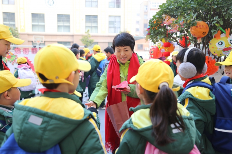 金水區(qū)文源小學黨支部書記、校長黃延穎帶領領導班子成員和老師們?yōu)楹⒆觽儨蕚淞诵聦W期紅包,孩子們只要能夠答對紅包里與龍相關的傳統(tǒng)文化知識,便可獲得五顏六色的糖果,開啟甜蜜的新學期生活。