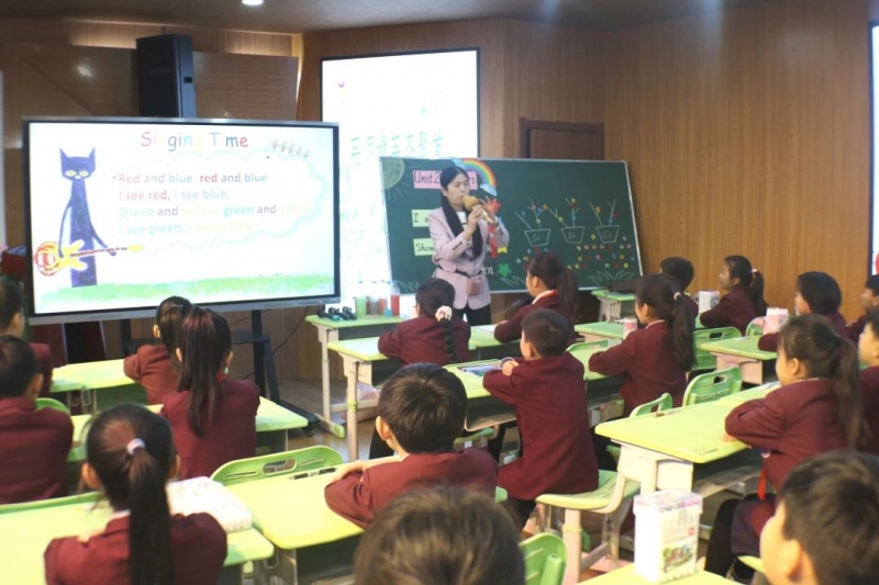 課例展示環(huán)節(jié),鄭州市鄭東新區(qū)康平小學(xué)教師杜豆豆執(zhí)教了三年級英語Unit 2 colours Let's learn & let’s do。她通過魔術(shù)導(dǎo)入新課,利用繪本教學(xué)激發(fā)學(xué)生學(xué)習(xí)興趣。教學(xué)活動(dòng)設(shè)計(jì)既充滿童“英”童趣,又緊密切合教學(xué)目標(biāo),訓(xùn)練學(xué)生綜合運(yùn)用語言的能力。