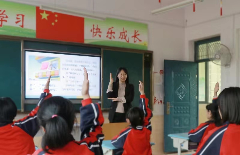 為了提升自己的專業(yè)素養(yǎng),李冰自費訂閱《中國特殊教育》《現(xiàn)代特殊教育》期刊,購買通用手語及語文學(xué)科手語類書籍,到蘇州、鄭州等地接受特殊教育相關(guān)培訓(xùn),積極參加各類教學(xué)競賽,不斷提升教育教學(xué)水平。2019年,《國家通用手語詞典》出版,與原手語區(qū)別較大。為了熟練運用新手語,李老師逼迫自己掌握了新版8214個詞匯。讀名著時,她指尖翻飛試著翻譯;學(xué)習時政新聞時,她的手也沒有停下來,而是把時政名詞一個不落地翻譯出來,嘴里還振振有詞。同事、老公、女兒都笑她學(xué)得走火入魔了。