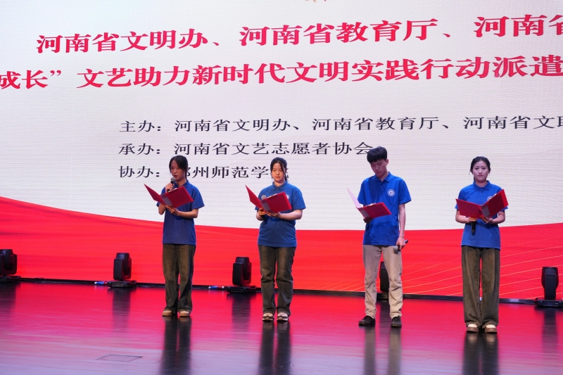 點(diǎn)亮七彩夢(mèng)想,激揚(yáng)青春力量。4月22日,由省文明辦、省教育廳、省文聯(lián)主辦的2024年上半年“快樂(lè)成長(zhǎng)”文藝助力新時(shí)代文明實(shí)踐行動(dòng)派遣儀式暨崗前培訓(xùn)在鄭州師范學(xué)院舉行。該校和來(lái)自鄭州大學(xué)、河南大學(xué)等11所高校的88名文藝志愿者,經(jīng)過(guò)崗前培訓(xùn)后,將被分別派遣到全省13個(gè)縣(市)的48所鄉(xiāng)村中小學(xué)校,開(kāi)展為期三個(gè)月的文藝支教工作。本期鄭州師范學(xué)院共從音樂(lè)與舞蹈學(xué)院和體育學(xué)院選拔了6名優(yōu)秀志愿者,將前往許昌市襄城縣開(kāi)展支教。