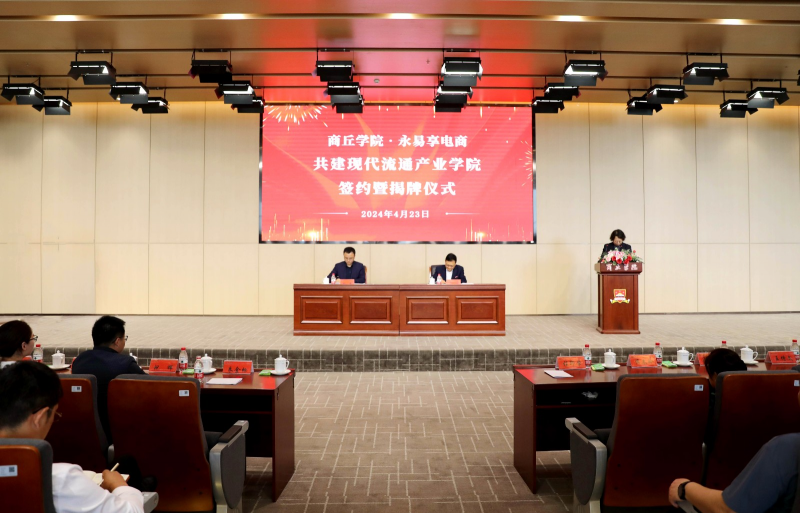 雙向奔赴,合作共贏,4月23日,商丘學院與永易享電商共建“現(xiàn)代流通產(chǎn)業(yè)學院”簽約暨揭牌儀式在我校圖書館多功能報告廳順利舉行。雙方就建設“現(xiàn)代流通產(chǎn)業(yè)學院”、深化產(chǎn)教融合、校企協(xié)同育人等內(nèi)容達成共識。副校長潘一展主持揭牌儀式。
