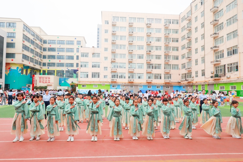 4月28日上午,鄭州市金水區(qū)經(jīng)三路小學(xué)的操場上,師生身著五顏六色的漢服盛裝,到處洋溢著歡笑與期待,一場以中醫(yī)藥文化特色為主題的運動盛會拉開帷幕。