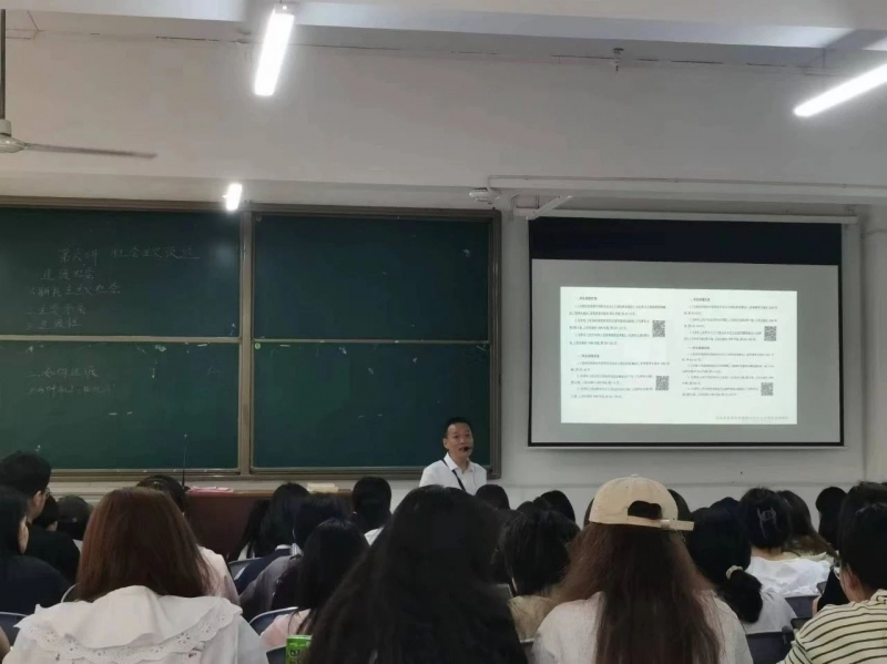 調(diào)研組采取隨機(jī)抽取、隨手推門的方式,深入思政課課堂,先后聽取了馬克思主義學(xué)院教師衛(wèi)巖偉講授的《毛澤東思想和中國特色社會(huì)主義理論體系概論》課程和教師李曉雯講授的《形勢(shì)與政策》課程。