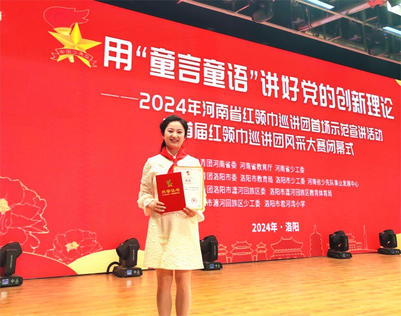 5月9日,在共青團(tuán)河南省委、河南省教育廳、河南省少工委聯(lián)合舉辦的河南省首屆紅領(lǐng)巾巡講團(tuán)風(fēng)采大賽決賽中,來自南陽市中學(xué)組的唯一選手、南陽市二十三中少先隊(duì)輔導(dǎo)員安賢獲得一等獎(jiǎng)。
