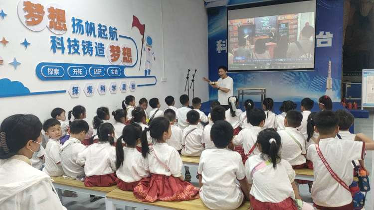 科創(chuàng)展廳,講解員帶領孩子們認識了各種各樣的科創(chuàng)成果展品,展示了搖控飛機飛上天、機器人躲障礙物等。孩子們被這些高科技產品深深吸引,立志長大后也要成為科學家,用發(fā)明改變未來。