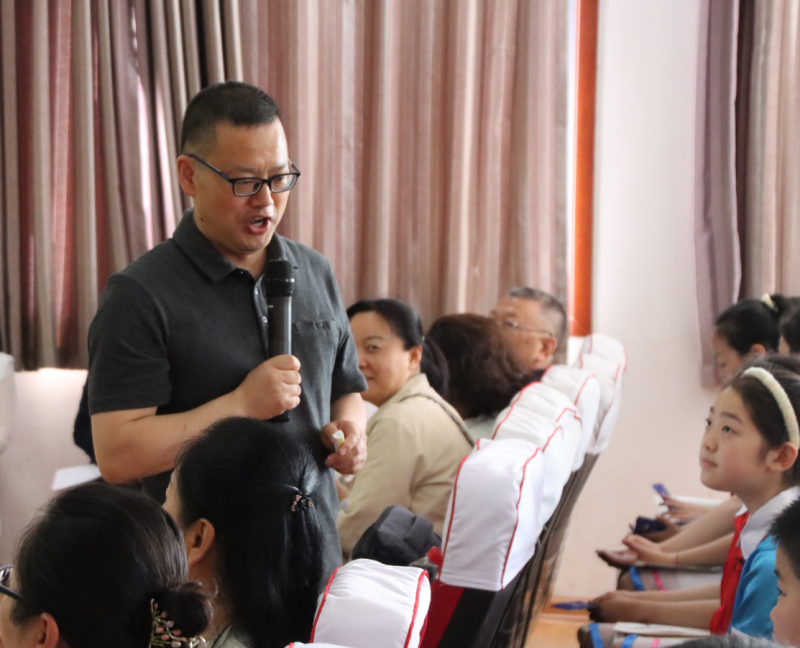 2021年全國推動(dòng)讀書關(guān)注人物、教育時(shí)報(bào)社教研部主任代修鵬,為大家?guī)砹祟}為《讀寫之美》的報(bào)告,結(jié)合自身的讀寫實(shí)踐與經(jīng)驗(yàn)總結(jié),用記者的親身經(jīng)歷為在場的“小記者”們帶來了一堂別開生面的“記者實(shí)踐課”,引導(dǎo)學(xué)生腳踏實(shí)地,逐夢前行。