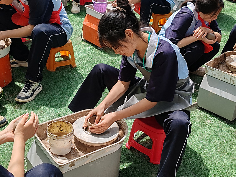 當日,禹州市三立高中200余名學生首先來到星航英歌鈞瓷藝術(shù)館。講解員白云鶴結(jié)合圖文并茂的課件,為同學們上了一堂別開生面的跨學科鈞瓷藝術(shù)研究課,并組織歡快有趣的互動小游戲,讓學生們快速掌握鈞瓷的形、色及藝術(shù)特點。隨后,學生們在工作人員指導下,親自體驗了鈞瓷制造中的手拉坯環(huán)節(jié)。“原來地理和氣候也是鈞瓷得以在禹州市發(fā)展壯大的原因之一,真是‘漲知識’了。”該校高二(4)班學生程果在聽完講解后感慨到,“看著這些古樸渾厚的鈞瓷,我不由得想到遺留在大英博物館的上萬件中國文物。希望隨著國家綜合國力的提升,越來越多的海外中華文物能夠回歸祖國!”