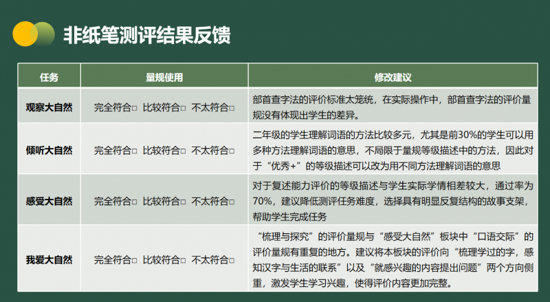與此同時,為了深入研究一二年級非紙筆測評這一命題,我們的思考也再次走向深入: