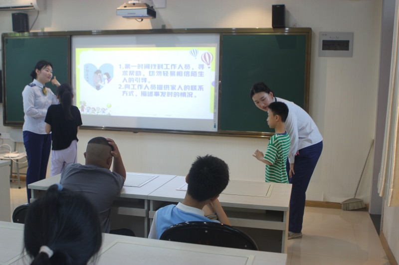 活動(dòng)伊始,地鐵站工作人員向同學(xué)們講解了地鐵設(shè)備和人員的相關(guān)知識(shí),如站務(wù)員與消防員、“天線寶寶”和“鐵箱子”等,同學(xué)們認(rèn)真聽講,興趣盎然,知道了地鐵站的重要性和安全規(guī)范。在體驗(yàn)互動(dòng)環(huán)節(jié),地鐵站工作人員請(qǐng)同學(xué)們使用“天線寶寶”對(duì)講機(jī)進(jìn)行交流,帶領(lǐng)同學(xué)們分組模擬跟家長走散和過閘機(jī)的情景,同學(xué)們認(rèn)真聆聽,積極互動(dòng),知道了許多關(guān)于乘坐電梯、地鐵的安全知識(shí),明白了在遇到與家長走丟時(shí)應(yīng)及時(shí)向工作人員求助、過閘機(jī)時(shí)應(yīng)與家長手牽手的實(shí)用技巧。在游戲環(huán)節(jié),地鐵站工作人員帶領(lǐng)同學(xué)們一起開展“煩惱丟出去”的游戲,把成長的煩惱注入球上丟出去,同學(xué)們積極地參與游戲,氣氛開心活躍。活動(dòng)最后,進(jìn)行了沙畫活動(dòng),在地鐵站工作人員和老師的輔導(dǎo)下,每個(gè)同學(xué)都完成了自己的沙畫,收獲滿滿。