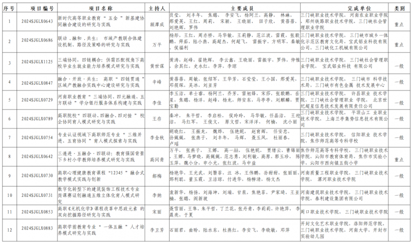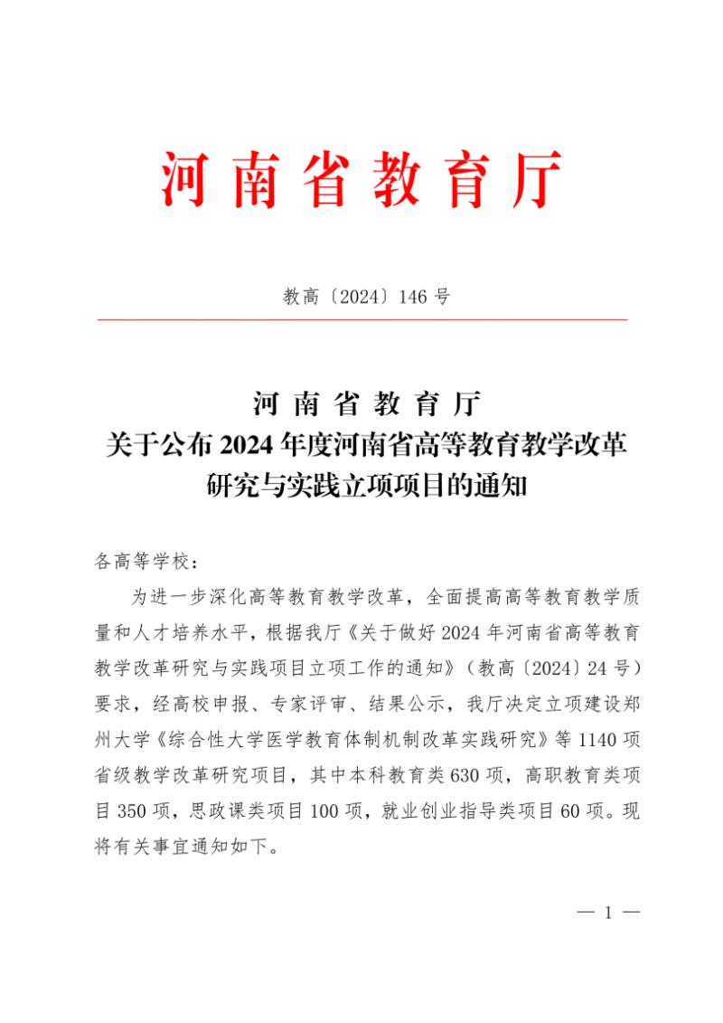 近日,河南省教育廳發(fā)布了《關(guān)于公布2024 年度河南省高等教育教學(xué)改革研究與實(shí)踐立項(xiàng)項(xiàng)目的通知》(教高〔2024〕146號(hào)),學(xué)院12個(gè)項(xiàng)目獲批立項(xiàng),其中以第一單位立項(xiàng)7個(gè),以參與單位立項(xiàng)5個(gè)。